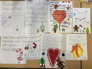 Die Schülerinnen und Schüler verfassten Weihnachtsbriefe und -grüße für die Bewohnerinnen und Bewohner des Stella-Vitalis-Seniorenzentrums in Gelsenkirchen, um den älteren Menschen in der Adventszeit eine Freude zu bereiten.