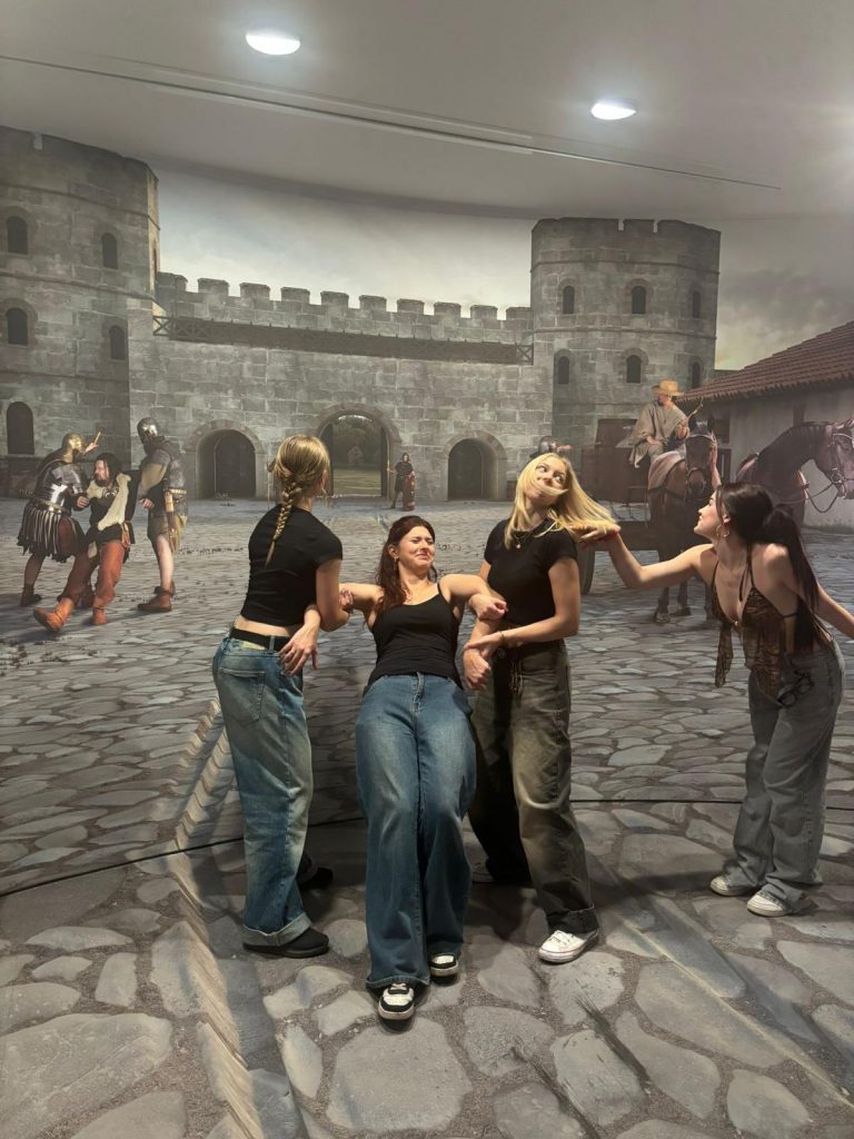 Der Mittwoch, der wohl ereignisreichste Tag, begann mit einem Besuch des Museum of Illusion – eine Fotochallenge, wer das lustige Foto schießt, durfte natürlich nicht fehlen. Das ist mal ein Museum nach unserem Geschmack, keine langen Texte und sehr interaktiv! 😉 Die folgende Mittagspause nach dem Museumsbesuch war perfekt für einen Baumstriezel (Ungarisch: “Kürtőskalács). Nun ging es von der Kettenbrücke (Zentrale Brücke, um die Donau zu passieren und die jeweils andere Stadtseite zu erreichen) aus auf die Pest-Seite und mit einer Art Gondel hoch auf den Burgberg. Die Aussicht von oben war sehr schön und durch die Säulenfenster der Fischerbastei hatten wir den perfekten Fotospot – ein Gruppenbild durfte natürlich nicht fehlen. Die Matthiaskirche und die Great Market Hall waren wunderschön mit den bunten Dachpfannen.