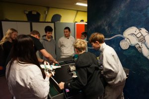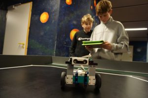 Am 16.01. folgte dann der zweite Termin. An diesem Termin bauten alle SchülerInnen zunächst ein Fahrzeug, welches sie unterschiedlich gestalteten. Das Ziel sollte sein, dass die Fahrzeuge möglichst stabil sind, da später ein Roboter-Kampf stattfinden sollte. Dafür bauten die SchülerInnen unterschiedliche, kreative Fahrzeuge. Nach der Mittagspause fanden dann die Roboter-Kämpfe statt. Ziel war es, den Roboter des Gegners aus einem bestimmten Bereich zu schieben. Am Ende war kaum genug Zeit, alle Kämpfe durchzuführen, und wie bereits in der Woche zuvor blieben einige SchülerInnen sogar noch länger. Alle hatten sehr viel Spaß an beiden Tagen und haben viel gelernt.