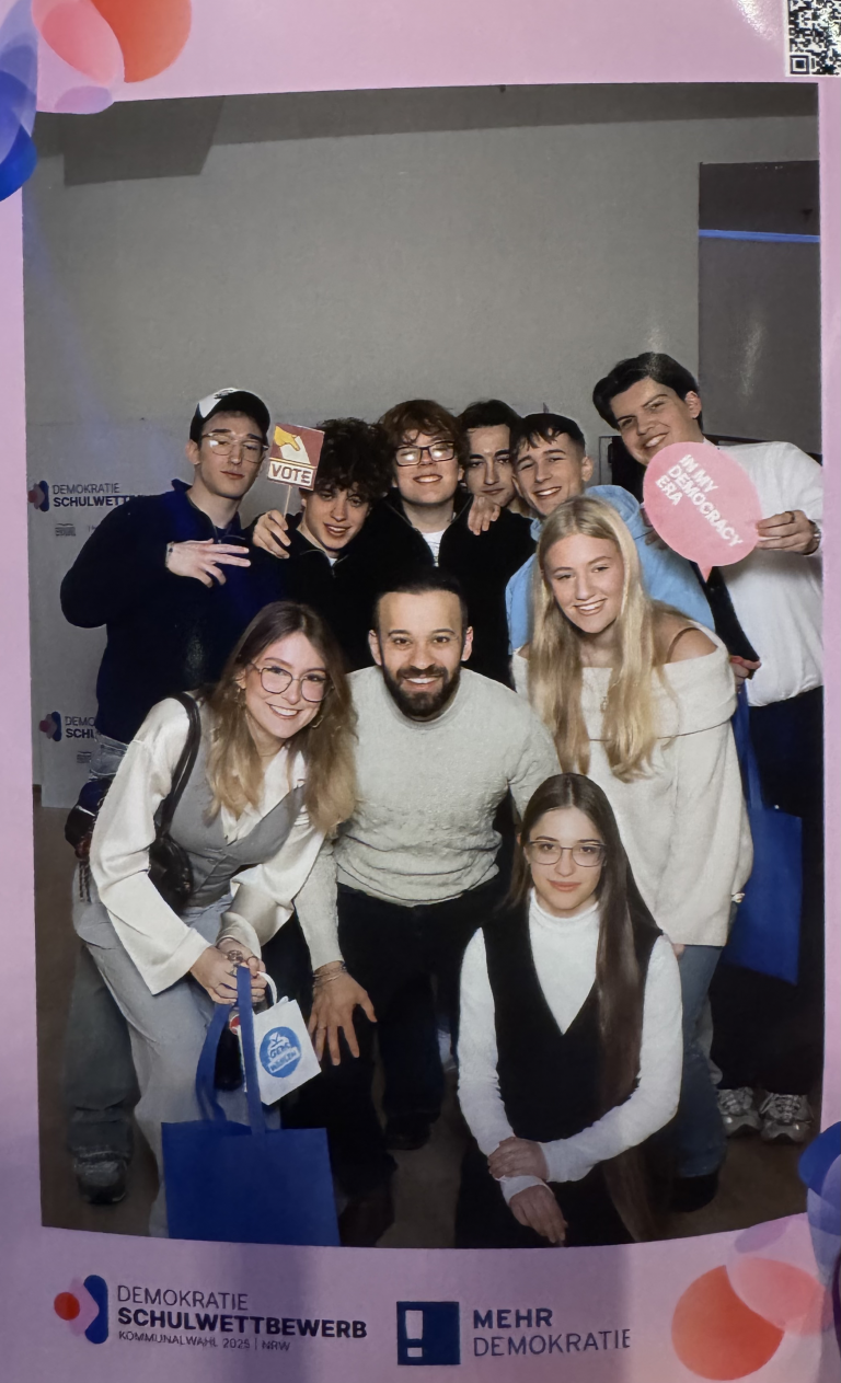 Der Leistungskurs Sozialwissenschaften der Q2 unter der Leitung von Herrn Baysal nahm im vergangenen Schuljahr am Demokratie-Schulwettbewerb anlässlich der Kommunalwahl in NRW teil. Den Abschluss bildete die feierliche Abschlussgala am 30.01.2026 in der Mercatorhalle Duisburg.