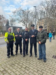 Im Anschluss hatte Younes El Kaada die Gelegenheit, ein gemeinsames Foto mit Frau Pasku und Frau Henze zu machen – ein schönes Zeichen für Zusammenhalt, Respekt und gelebte Erinnerungskultur. Ein herzlicher Dank gilt auch der Polizei Gelsenkirchen für die verlässliche Begleitung und Unterstützung des Schweigezugs.