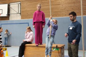 Unsere jüngeren Schüler stellten selbst hergestelltes Vogelfutter vor und erklärten, warum Naturschutz uns alle angeht. In der Sporthalle konnten Besucher an kleinen Fitness- und Koordinationsübungen teilnehmen, die unser Sportteam vorbereitet hatte.